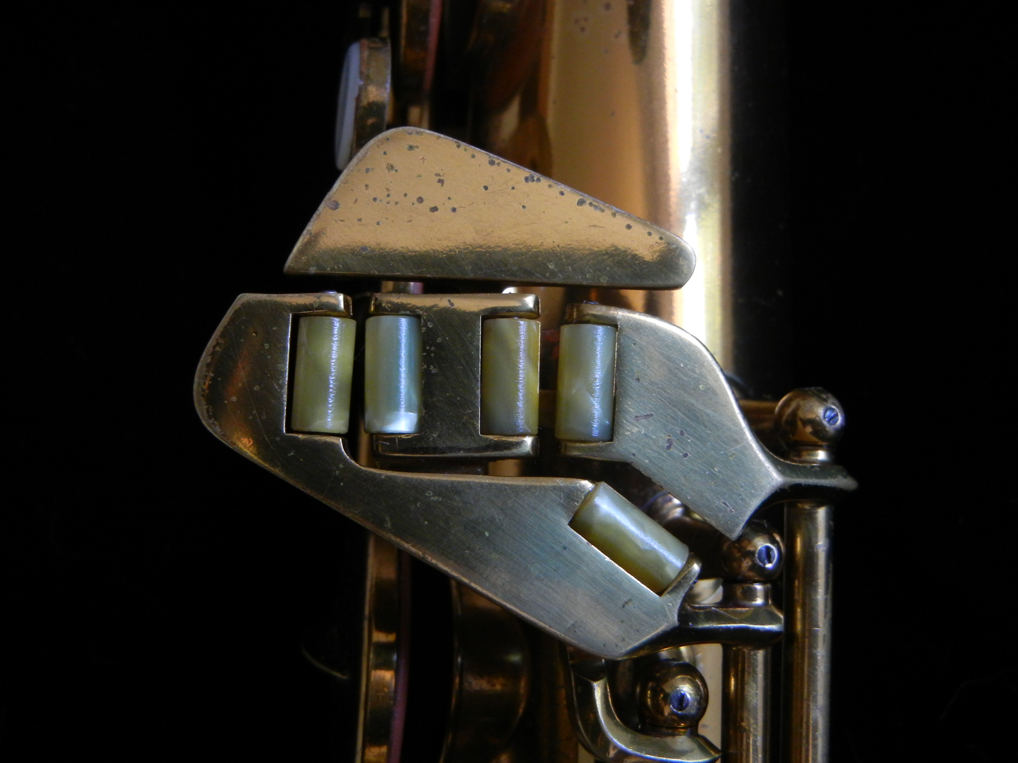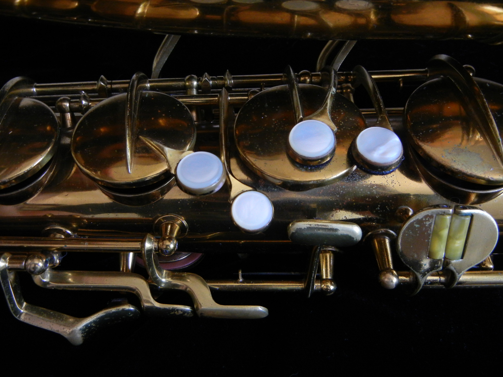 Physically it is in extremely good condition, which is rare for these instruments. The Eb keyguard has been resoldered, and a few minor dents have been removed. Original lacquer is at 95%, and all original components are present, in proper condition, and working properly right down to the tiny set screws.