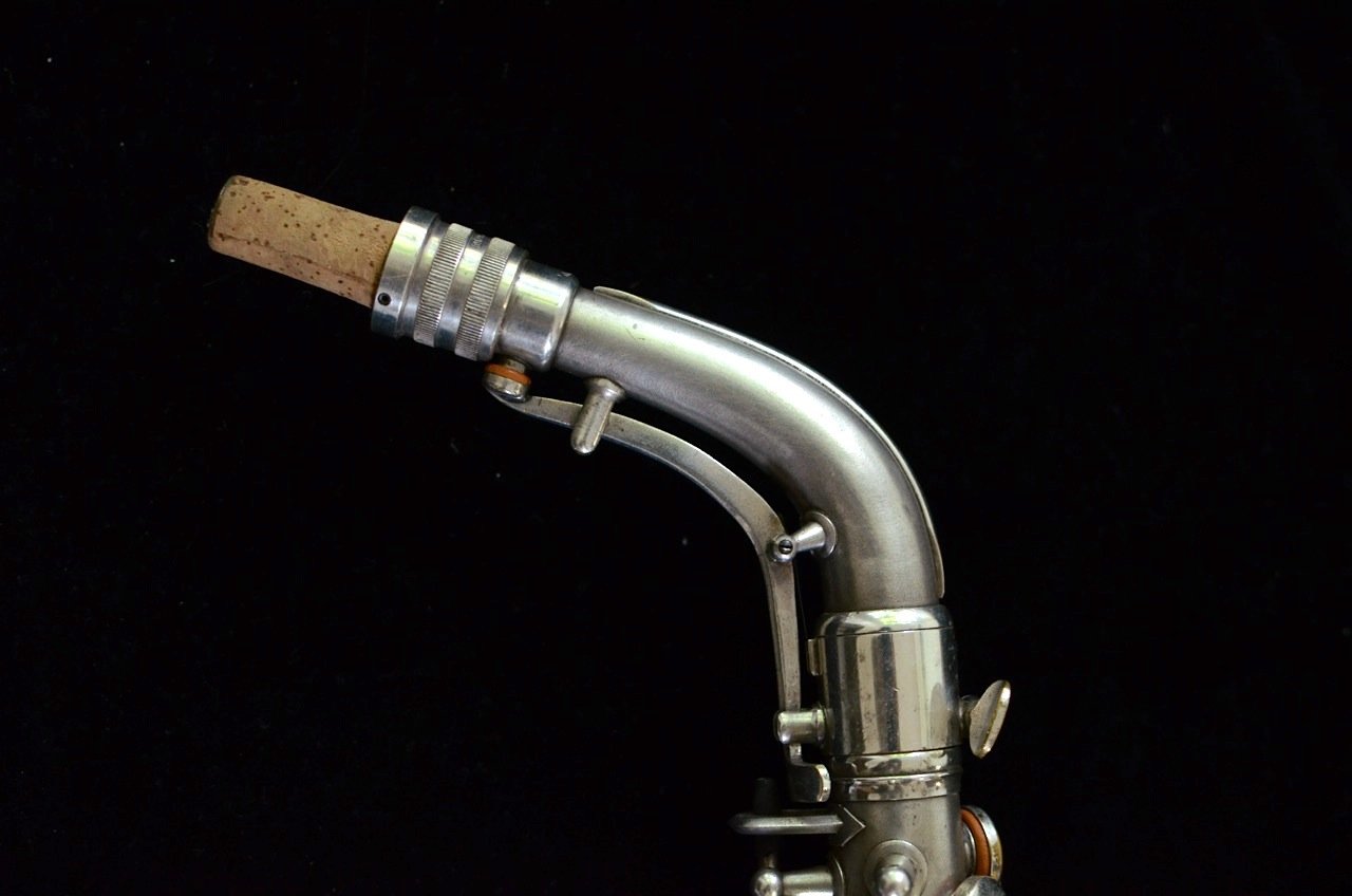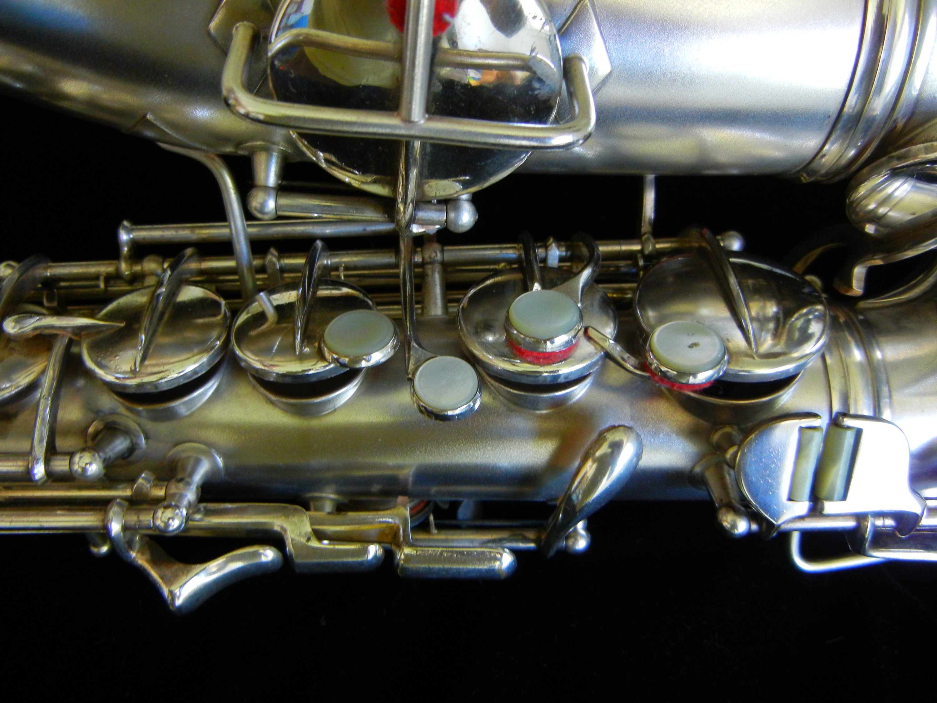 These are merely the most obvious physical changes to the alto, which also had an entirely new and much-improved key mechanism and a new body tube, giving improved intonation and much easier volume control. The Transitional 6Ms, as they’re known today, are those altos with some portion of the 6M design, but without the 6M stamp.
