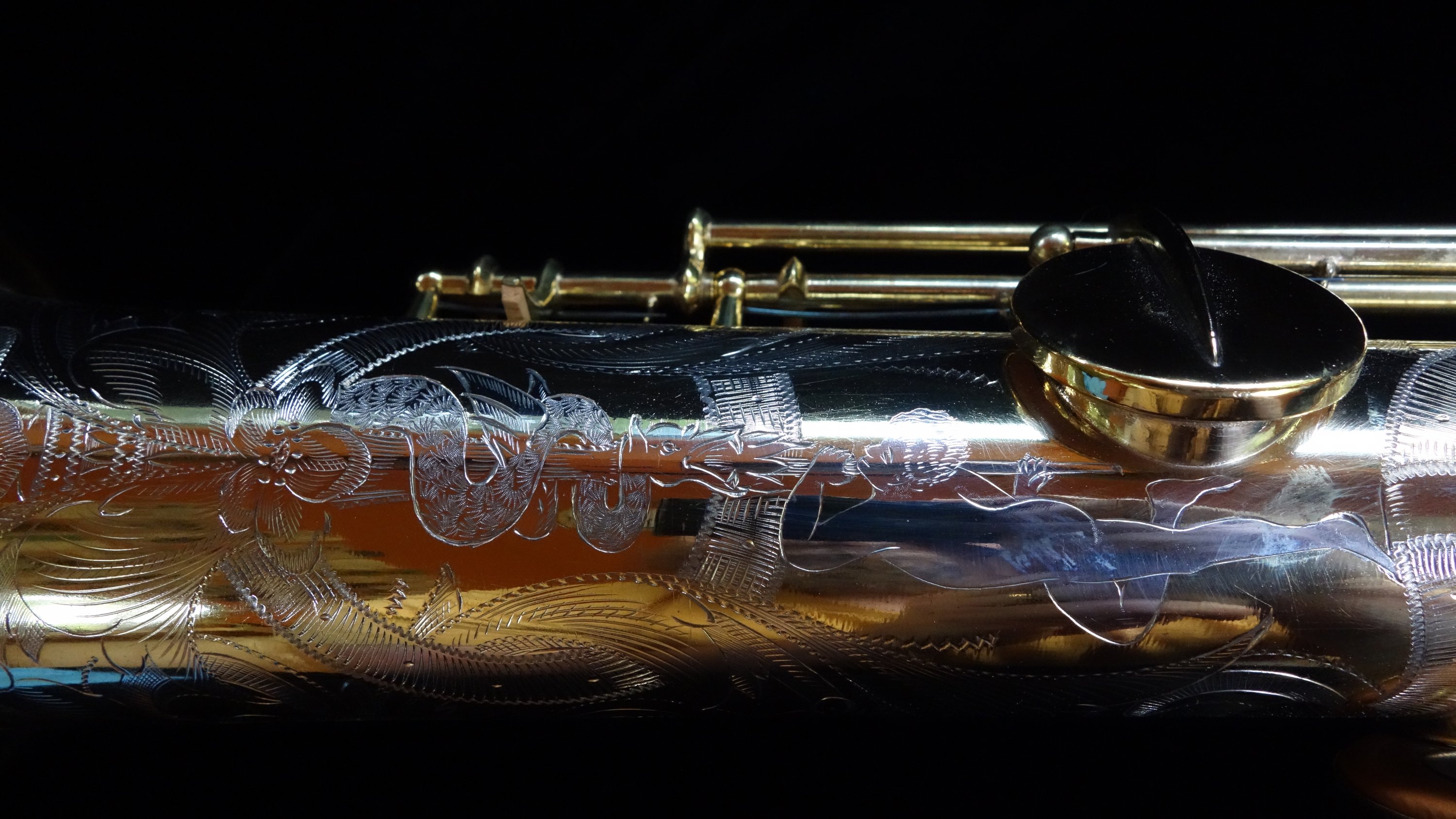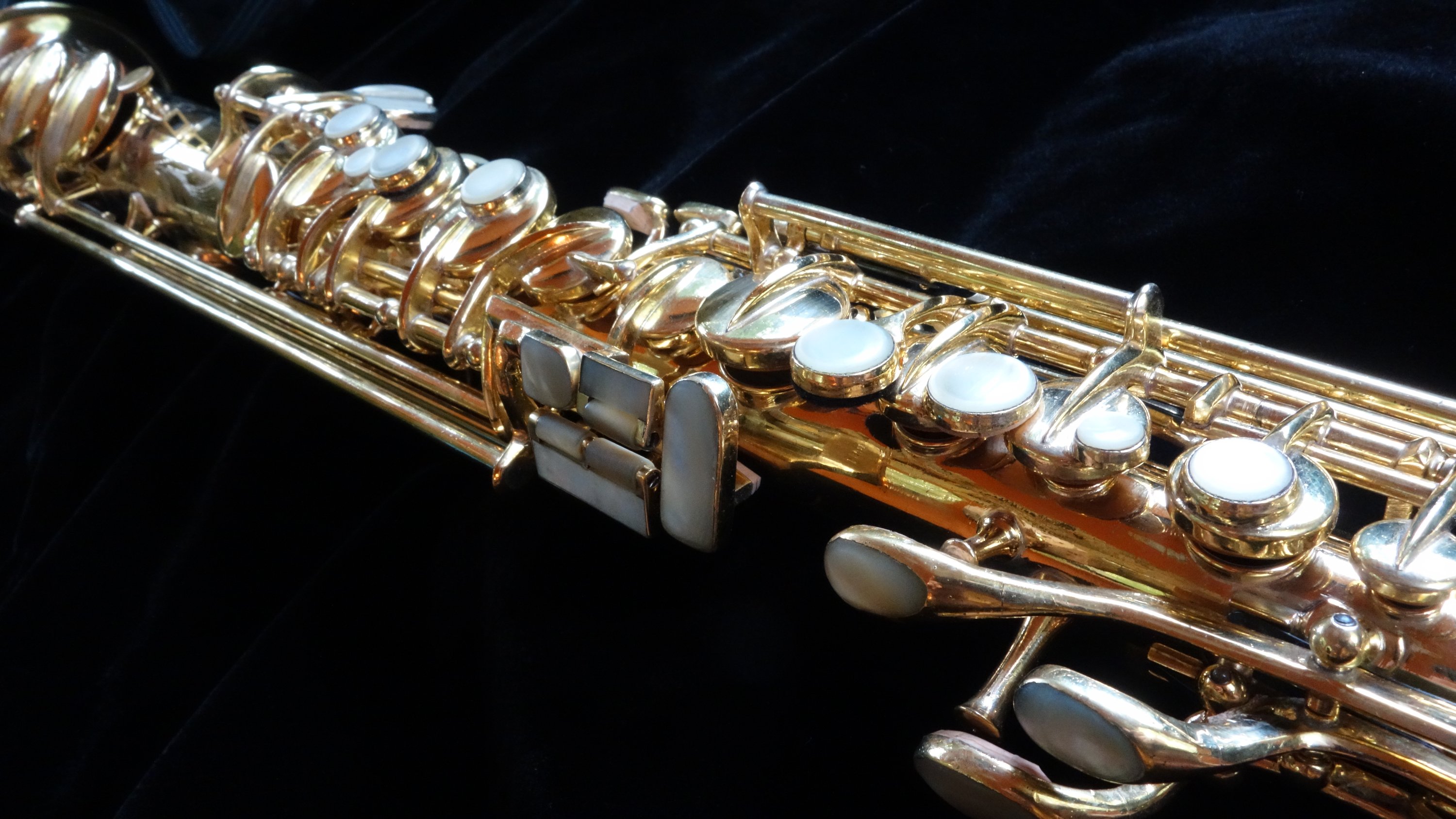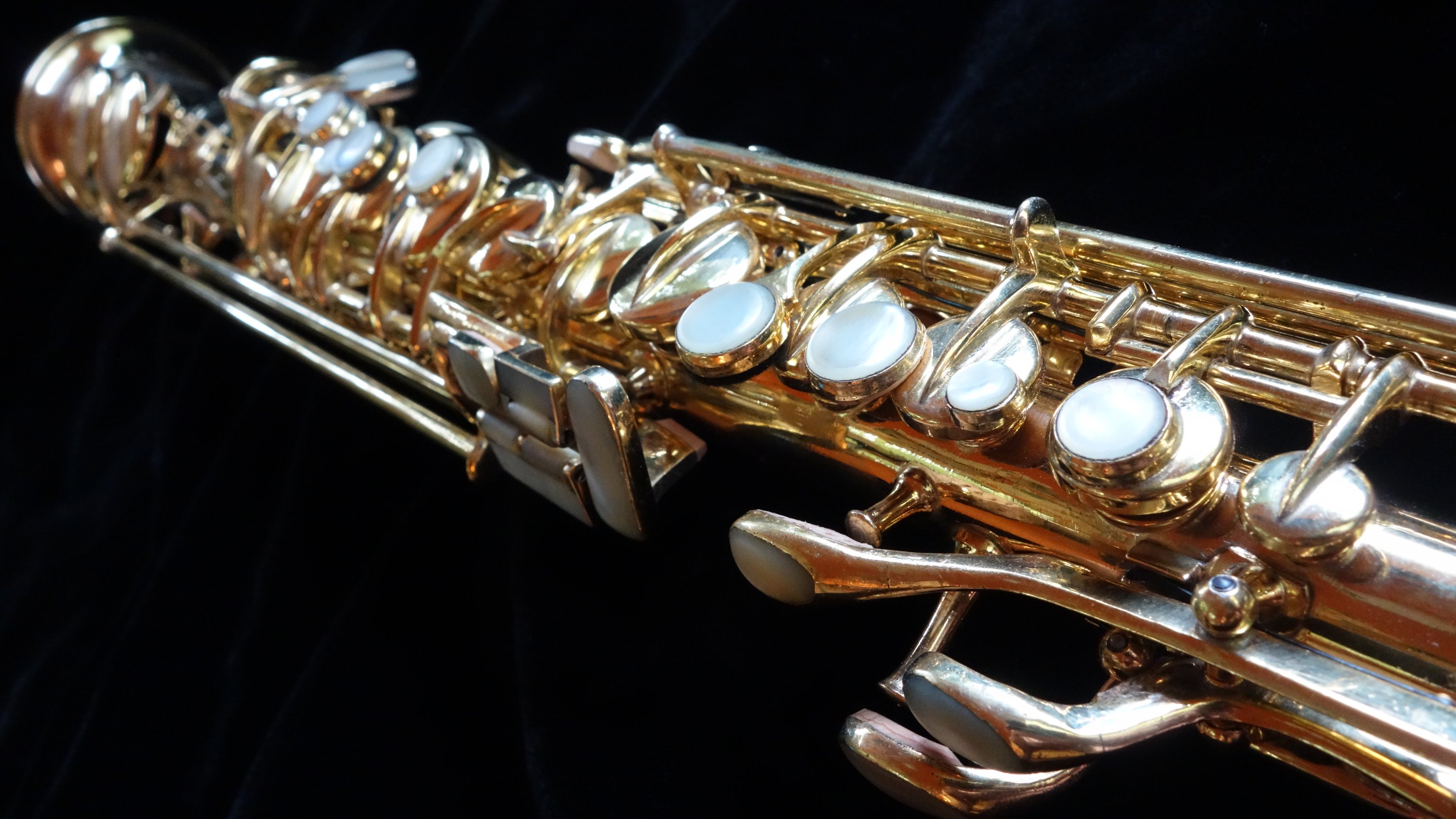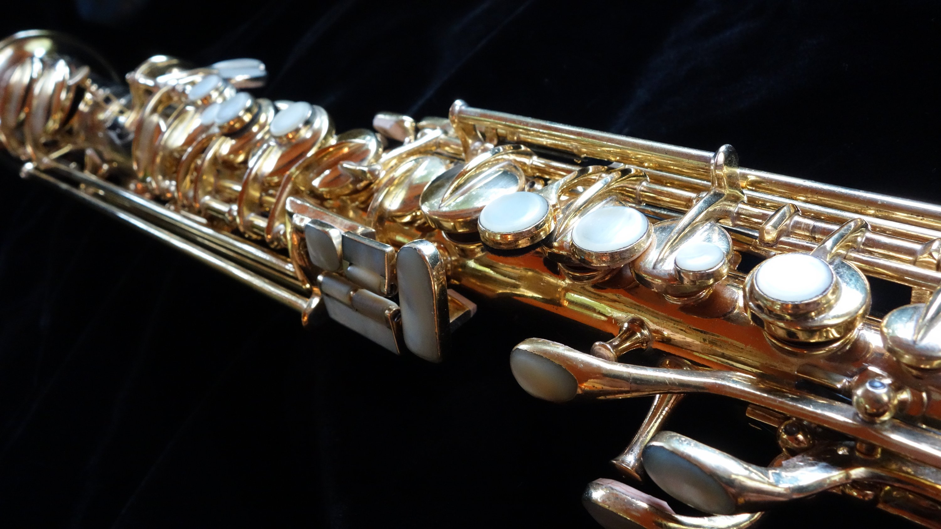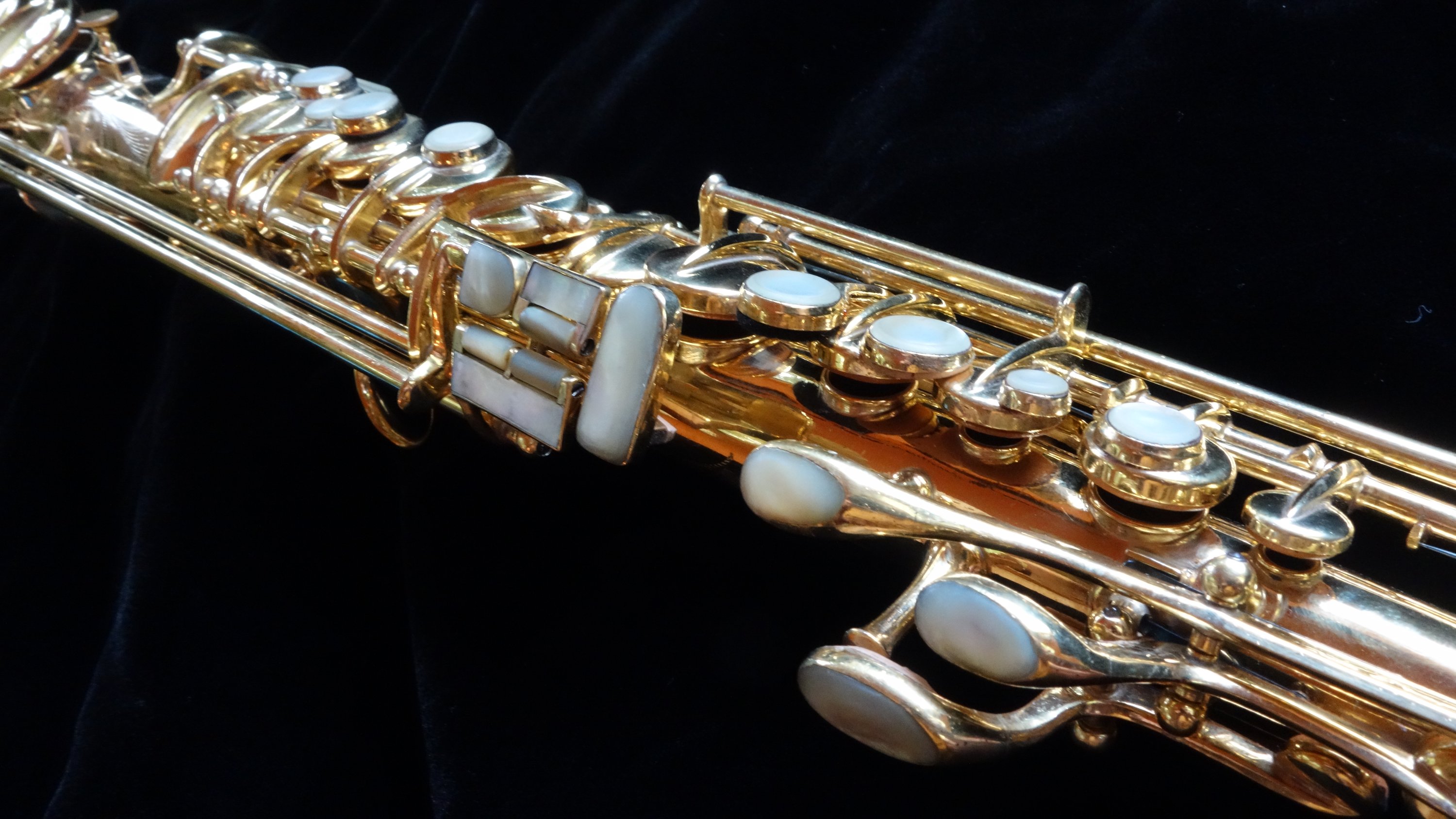 The saxophone itself plays quite well with a round, powerful dark sound and is easily a stand-out example of its type, the Conn New Wonder Series II. Already one of my favorite vintage sopranos to play, this one is also a work of art and a fine example of the best musical instrument craftsmanship in the United States in the 1920s.