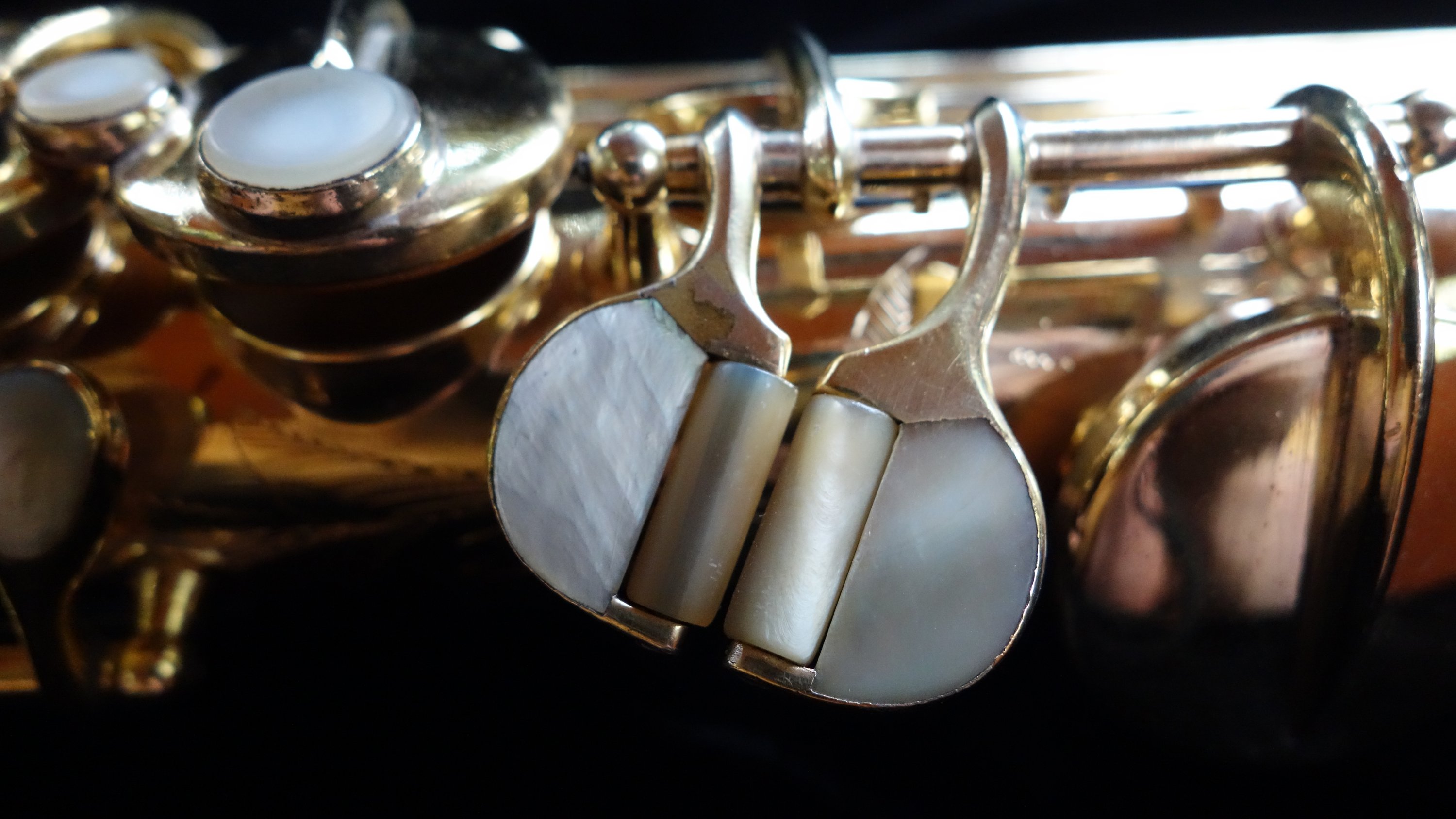I straightened the body on this horn and overhauled it with flat metal resonators in conservative sizing and corrected some strange springwork that had been done at some point in the past. I also tried to be a bit traditional when it came to adjustment materials and so forth, wanting my work to take a far back seat to the natural beauty of the saxophone itself.