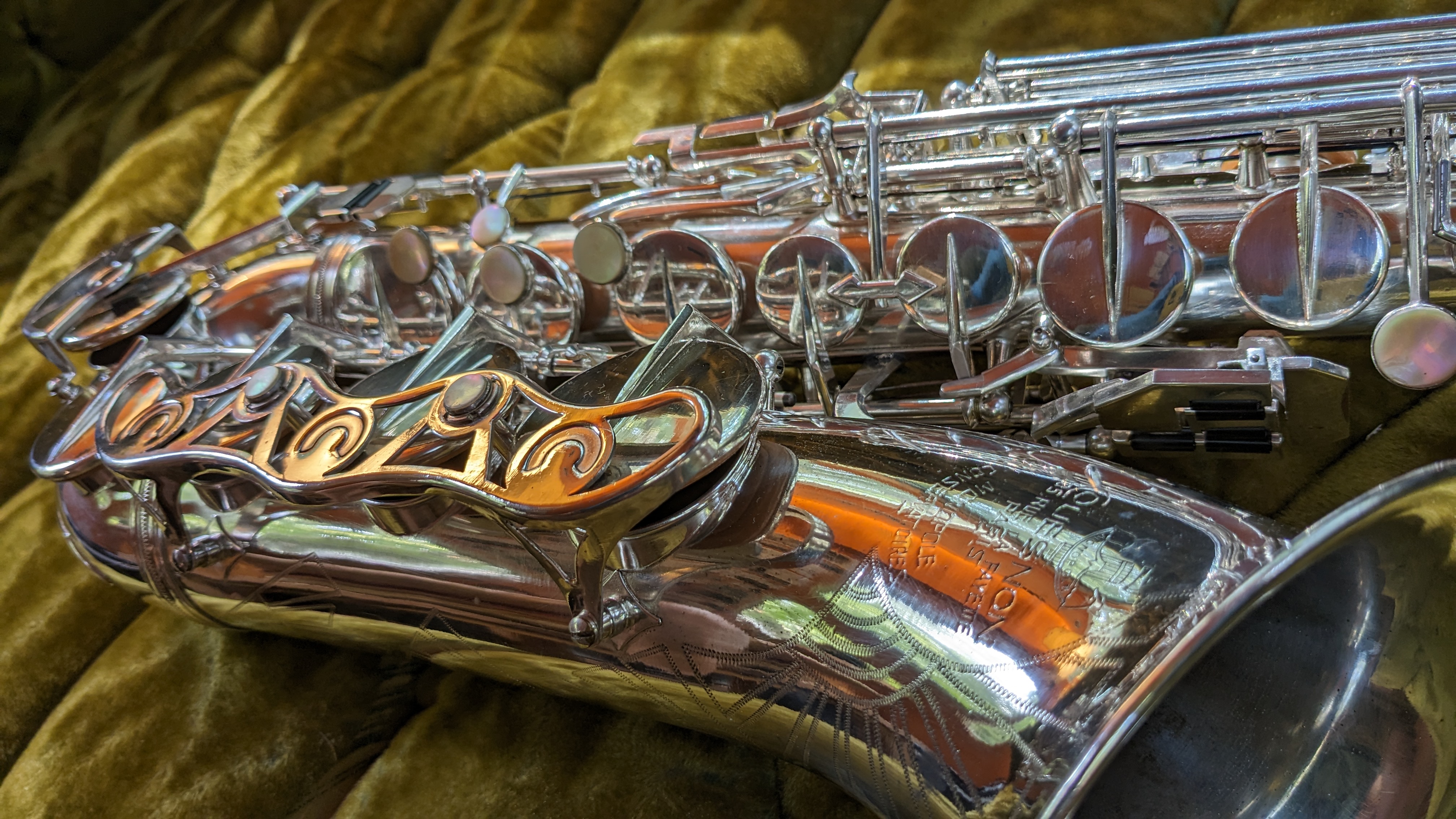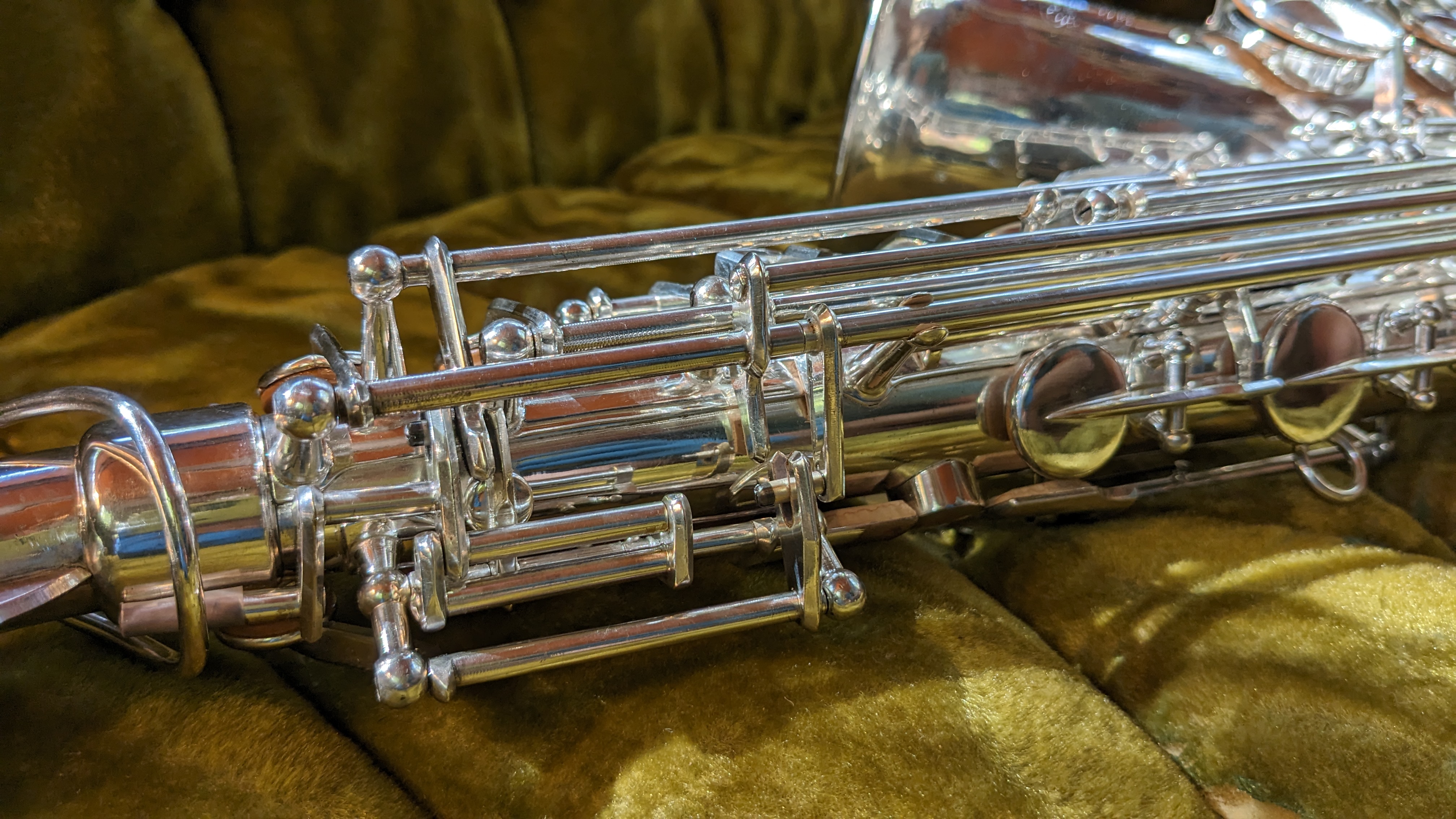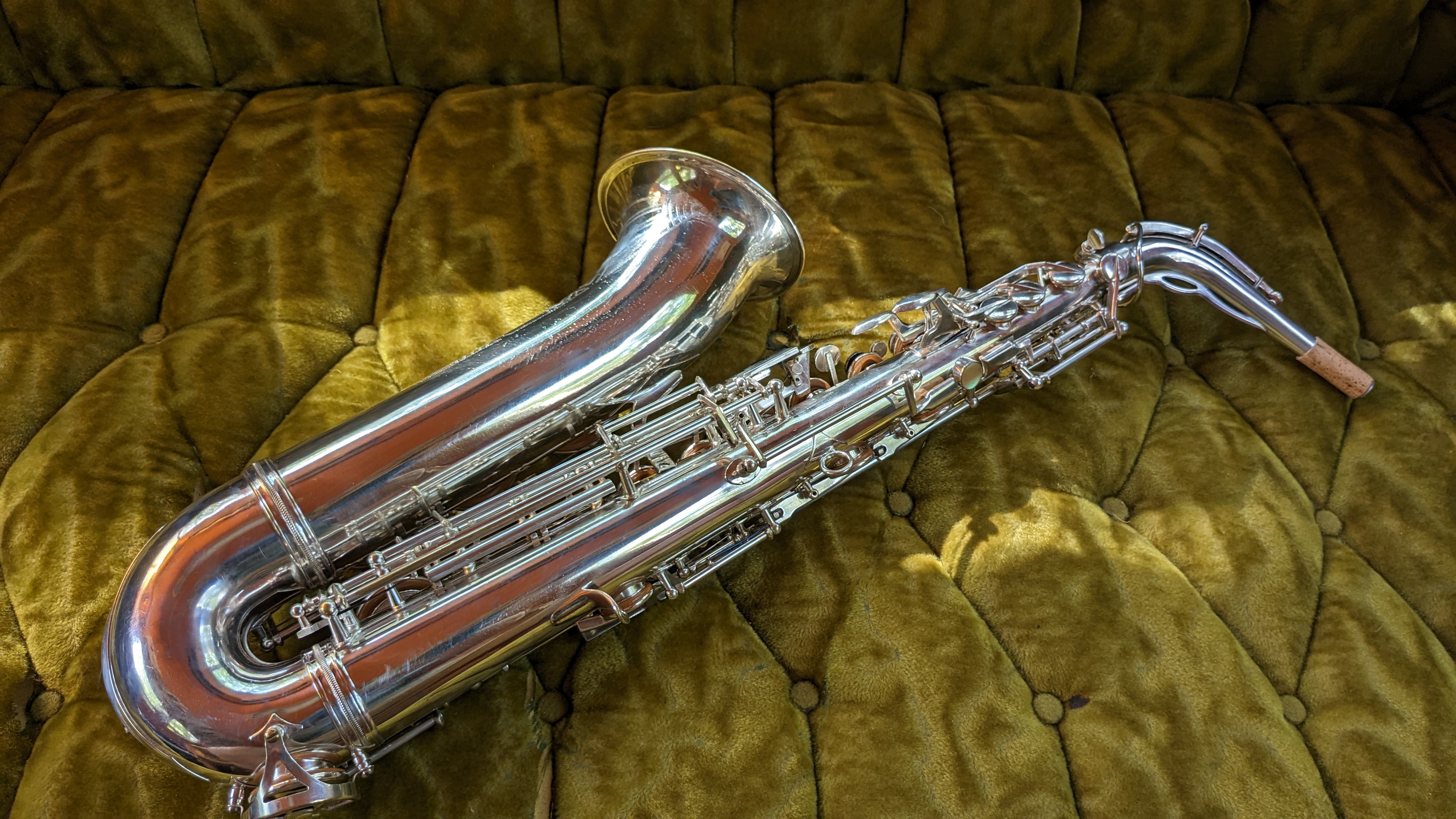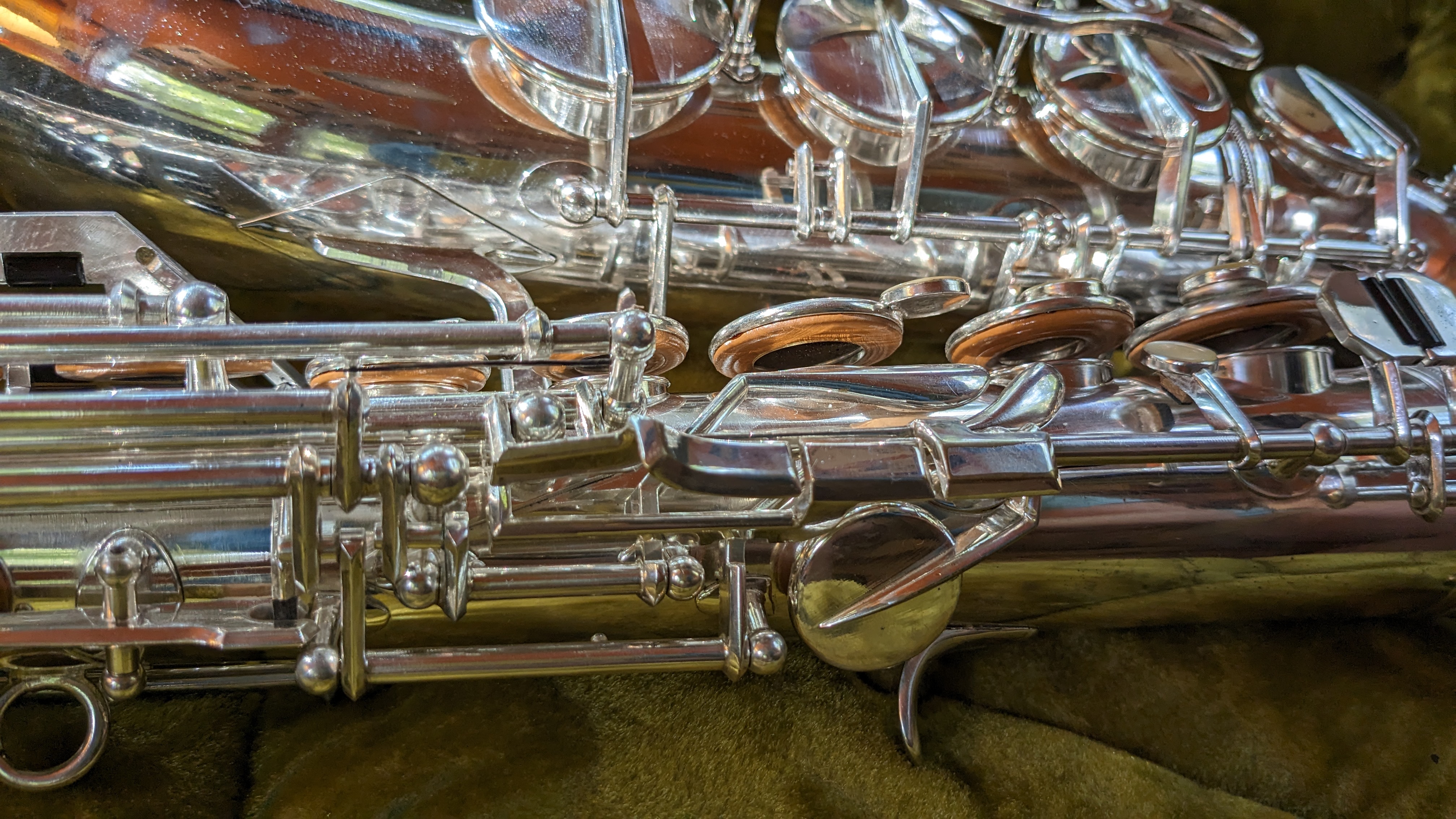 This was a very challenging overhaul. The extra range creates a lot of extra keys, and a lot of extra connections that have to be just right to feel snappy and not spongy or slow. I take pride in my work, but I would say that it is infrequent that I feel straight up proud. This is such an occasion. The keywork feels as snappy- from low A to high G- as a pristine, just overhauled 6M, and the tone is beautiful. Intonation is very good, and the horn is not only unique and rare but also eminently usable. I have become a big fan of Couesnon Monopole I and II horns over the past year or so, and this saxophone, a rare Monopole II variant, was everything I hoped it would be.