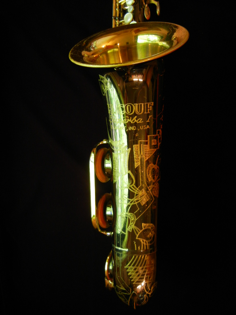 The Couf Superba I was made by Keilwerth, and is the predecessor to the SX90R series of saxophones which are still sold today (in fact, I am a Keilwerth dealer, so if you want a modern one, I can do that too!).   This is a professional model saxophone, featuring rolled toneholes, a wide bow and large bell, high F# key, and black nickel plate finish.  The ergonomics are very good with oversized pearls, intonation is good, and the tone is warm, lush, and ballsy.  Great horn for jazz, R&B, rock, gospel, soul… the list goes on.  These are excellent saxophones, and I am a fan of them.