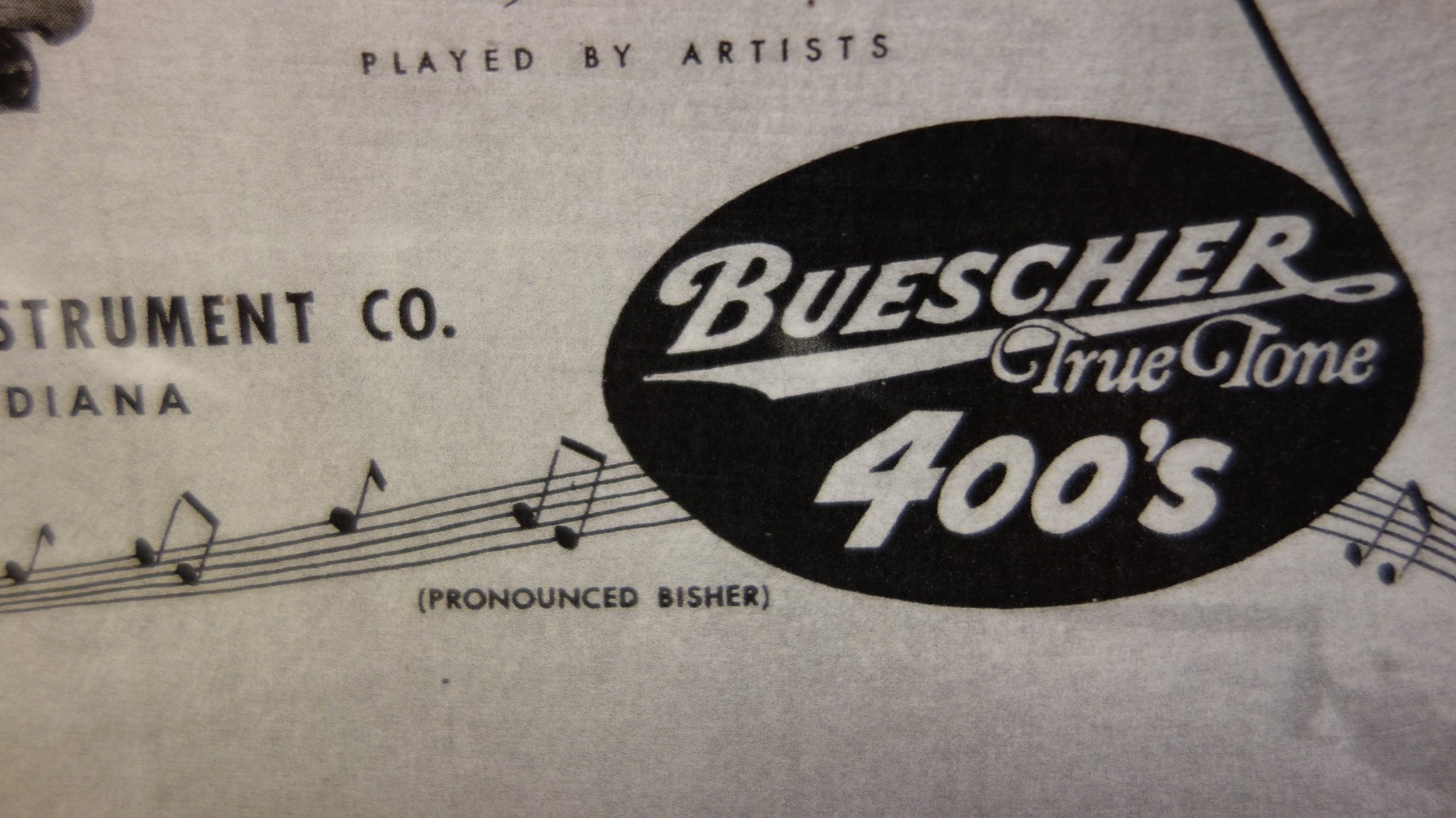I happen to have a Buescher ad from the 1940s hanging on the wall above my workbench. Read what it says: