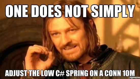 This is something I posted in a forum a little while ago. The question was “My low C# is stiff on my Conn 10M. What springs do I adjust to make it better?”