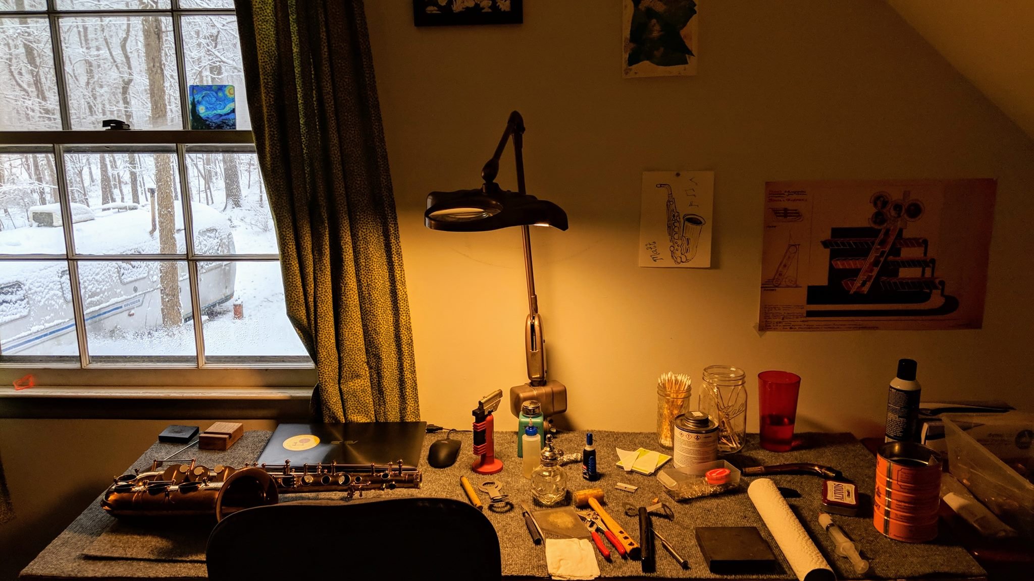 [caption id=“attachment_599” align=“aligncenter” width=“1024”] Working from home. Regular workshop (Airstream) visible out the window.[/caption]