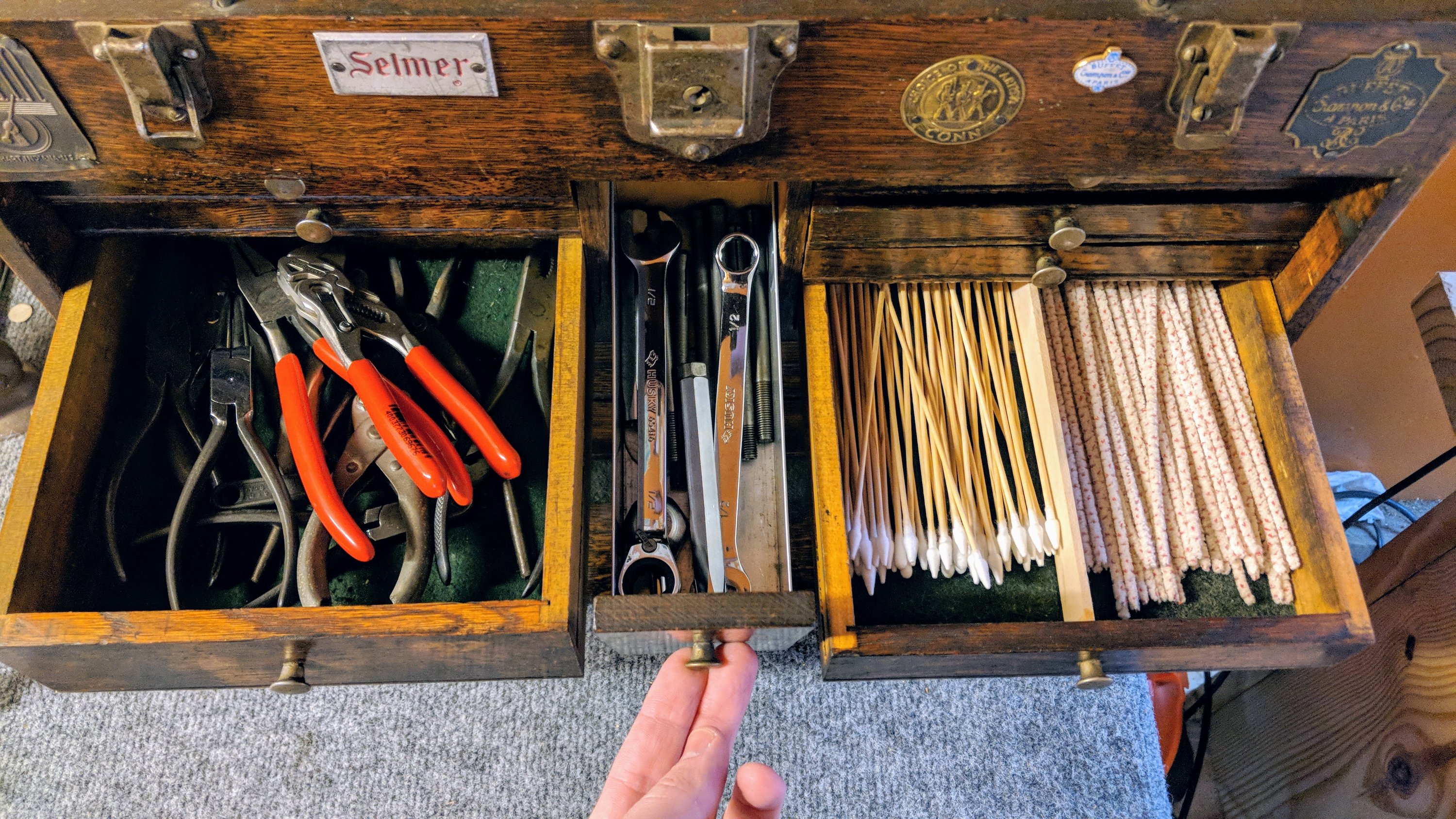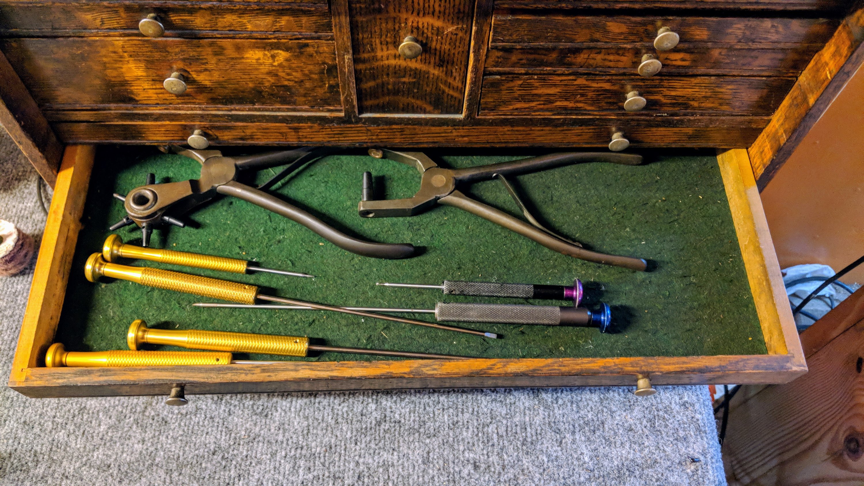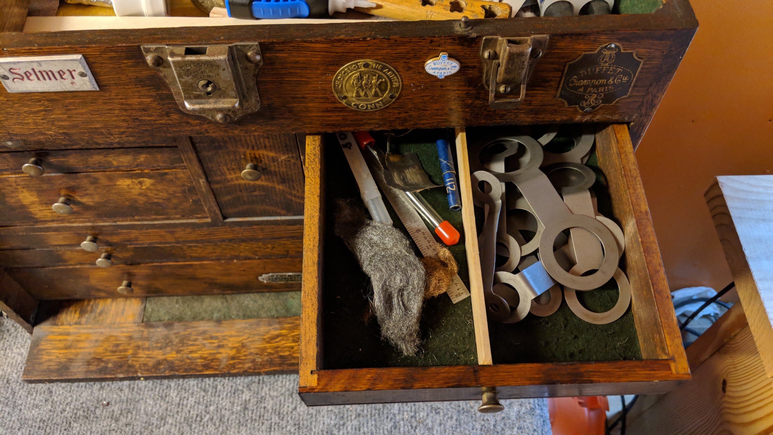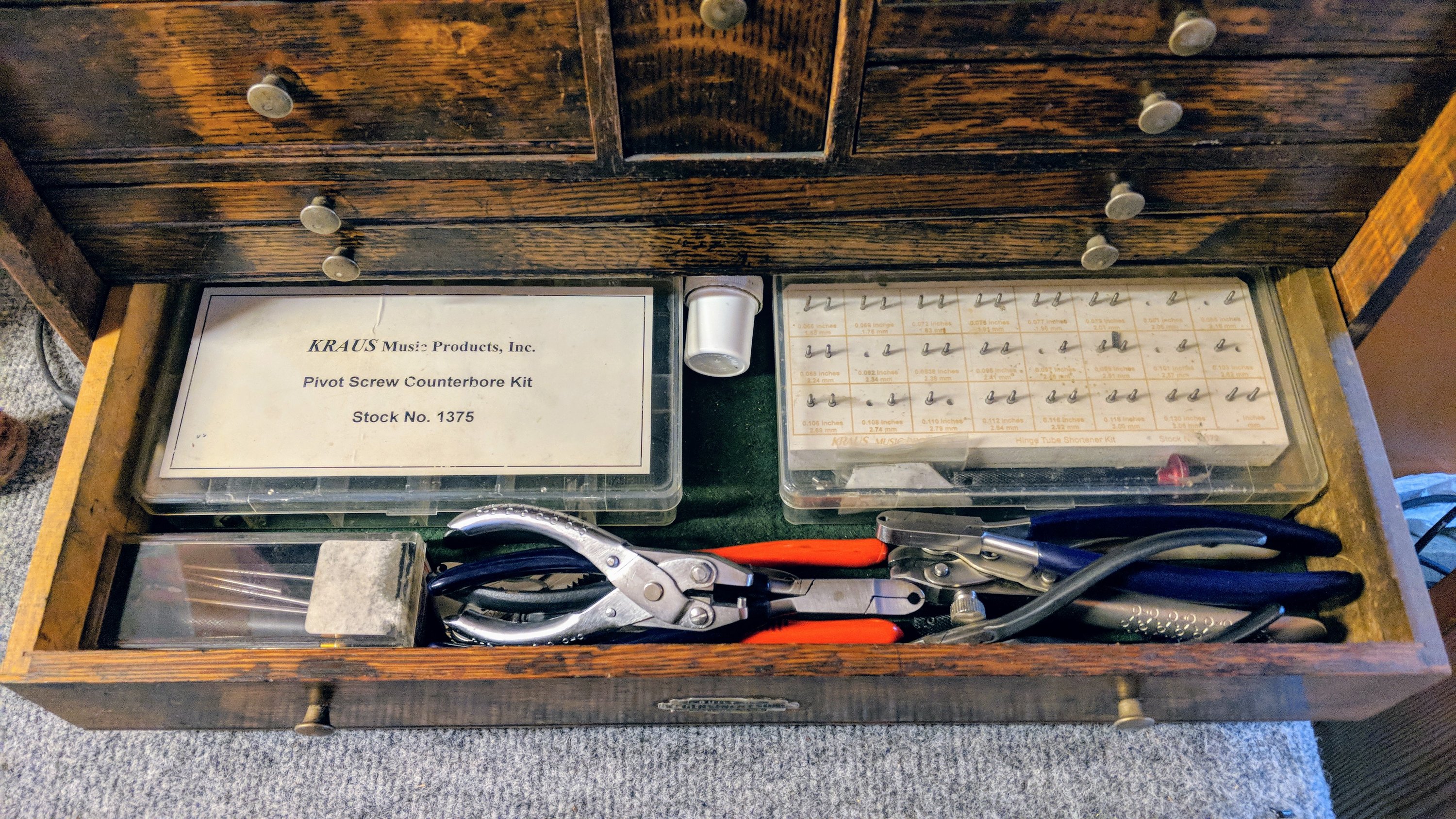 [caption id=“attachment_639” align=“aligncenter” width=“1024”] Inside of a little tin that sits in the top of the box: key felts, spare parts.[/caption]