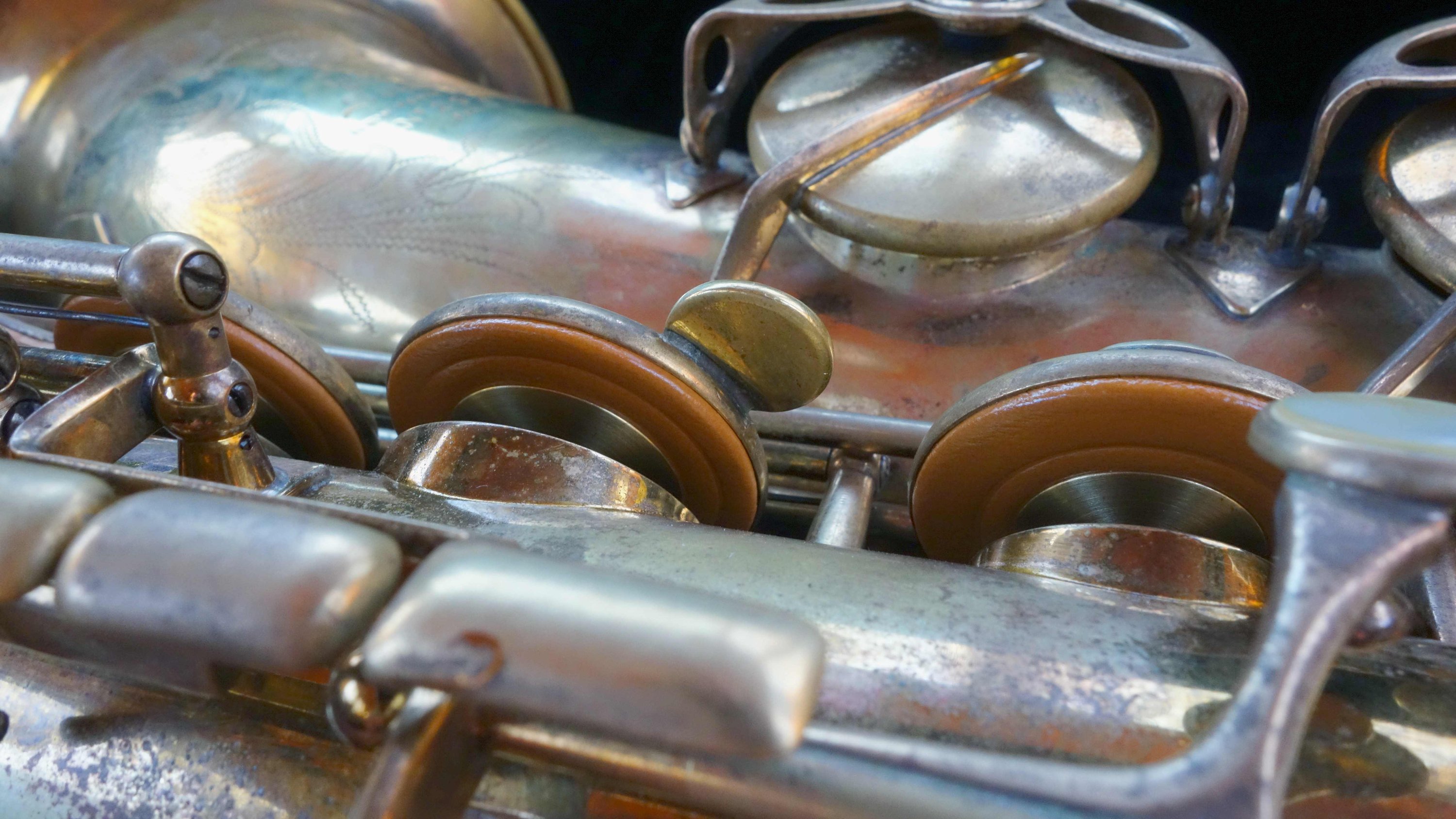 This is a Selmer Balanced Action tenor saxophone from 1939. This horn had a single owner, a man named Jennings Titus, who bought it new in 1940. Shortly after purchasing, he enlisted in the Army, and he played in military bands all over Europe during World War II. When he flew from place to place, he would send the horn with the officers since there was a lot more room in the officers plane, and he himself would fly with the rest of the enlisted bandsmen. His plane was shot down, but the officer’s plane was unhurt, and he spent the rest of the war in a POW camp while his horn was sent home to his parents. After the war, he reunited with his family and his horn, and played it for the rest of his life. Several years after his death, his daughter brought it to me to fix the old girl up, and I’m happy to say that this ended up being an absolutely beautiful horn that plays every bit as good as it looks. Every once in a while, you come across a Selmer that can give a Conn a run for its money in the big tone department, and this horn happens to be one.
