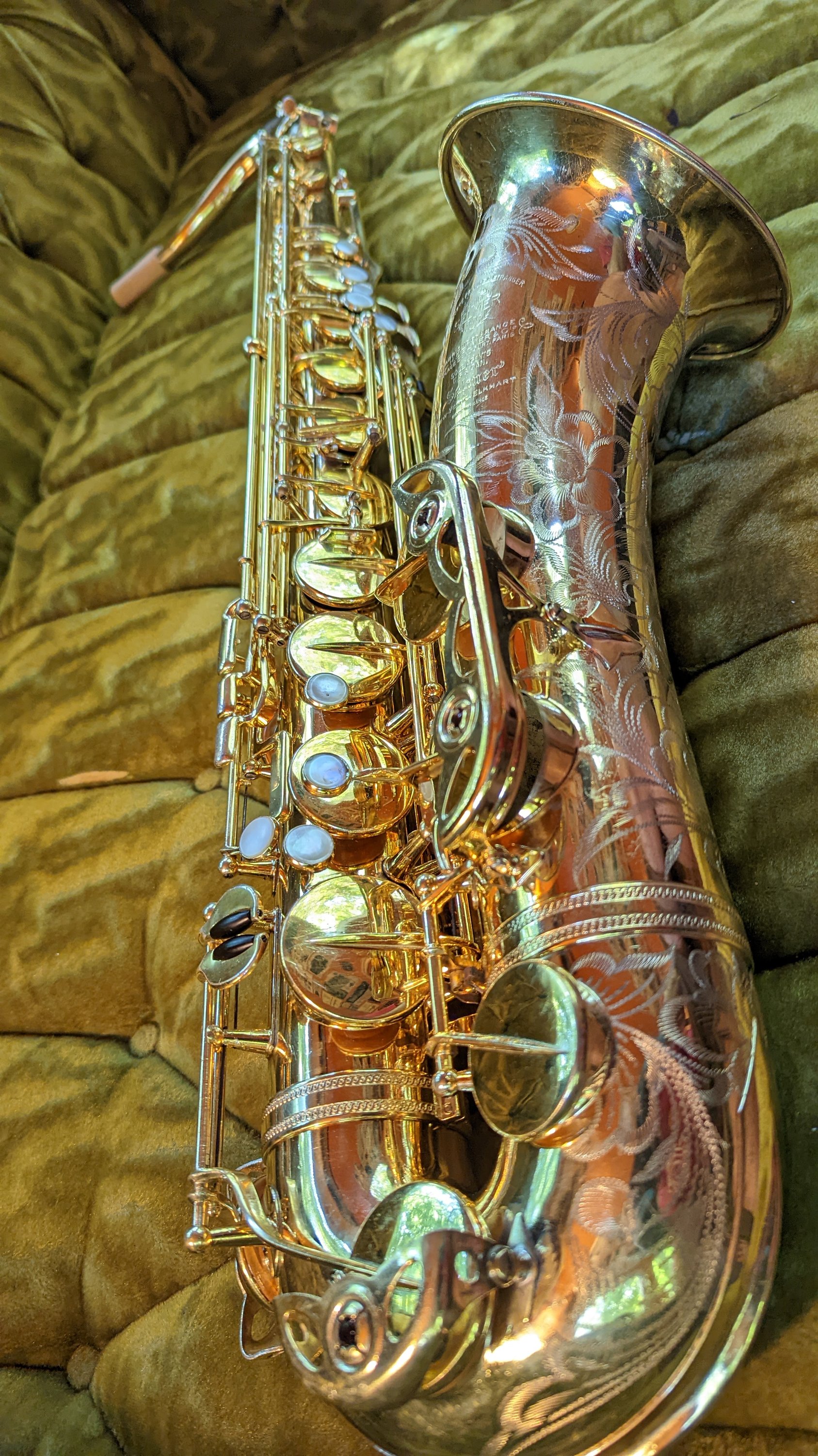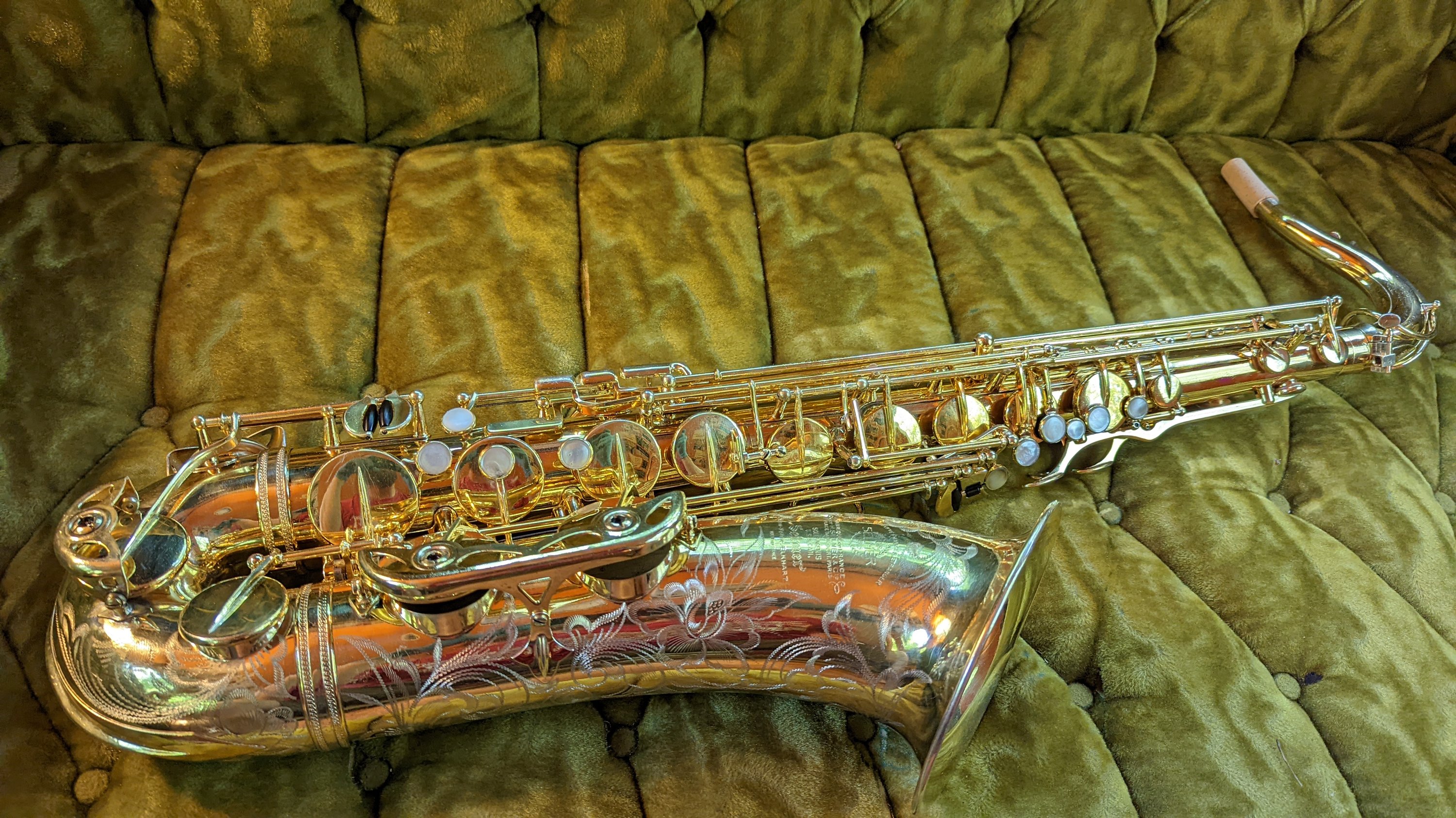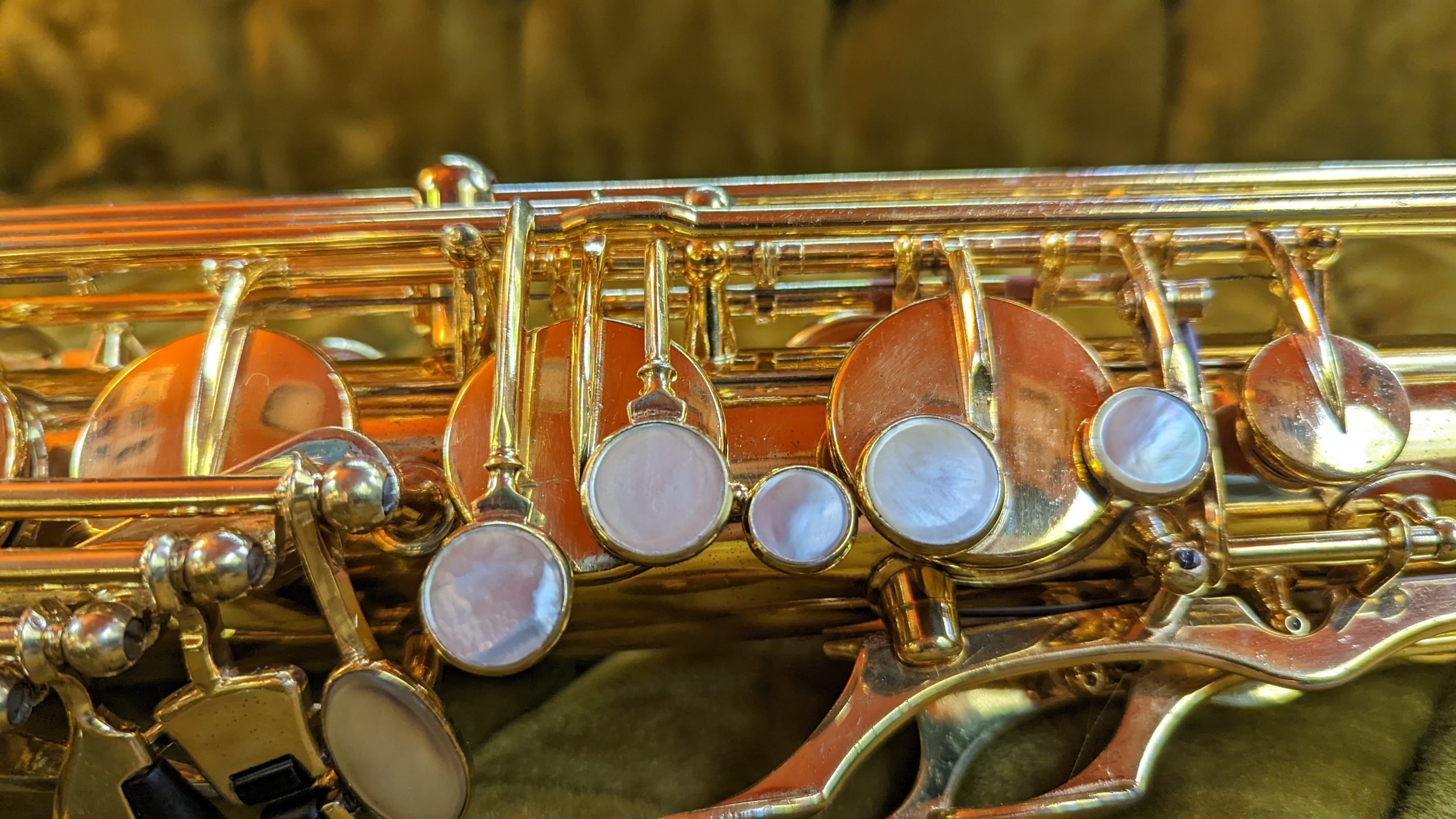 Prior to this horn, I had gone on a run of Conn saxophones (known for having the absolute HUGEST tone, bar none, and I will go to court and win the case that this is true) through the shop, and perhaps due to this, the first playing impressions were of a horn that was a little more restrained than I expected, but with a striking beauty of tone I have only encountered once before- also on a Selmer, a Dorsey Special alto. It was easy to get lost in the sound, to be sort of washed away by it, and forget I was supposed to be giving it a critical playtest. I would be lying if I said I didn’t get flushed, and tears probably would not be off the table if I had not snapped out of it and resumed an analytical approach to what I was hearing. The intonation was excellent, and this was one of the few times where I didn’t really find any adjustments I wanted to do to my work as far as key heights, spring tensions, etc. after I was done. It was just so much fun to play, and although the overhaul was a ton of work, the horn led me to a place where it played beautifully and it was a joy to play as well as appreciate as a work of art. I am lucky to not just get to see instruments like this, but to renew them to a second lifetime of music-making where they can be appreciated, operating to a standard I hope would make their designers proud.