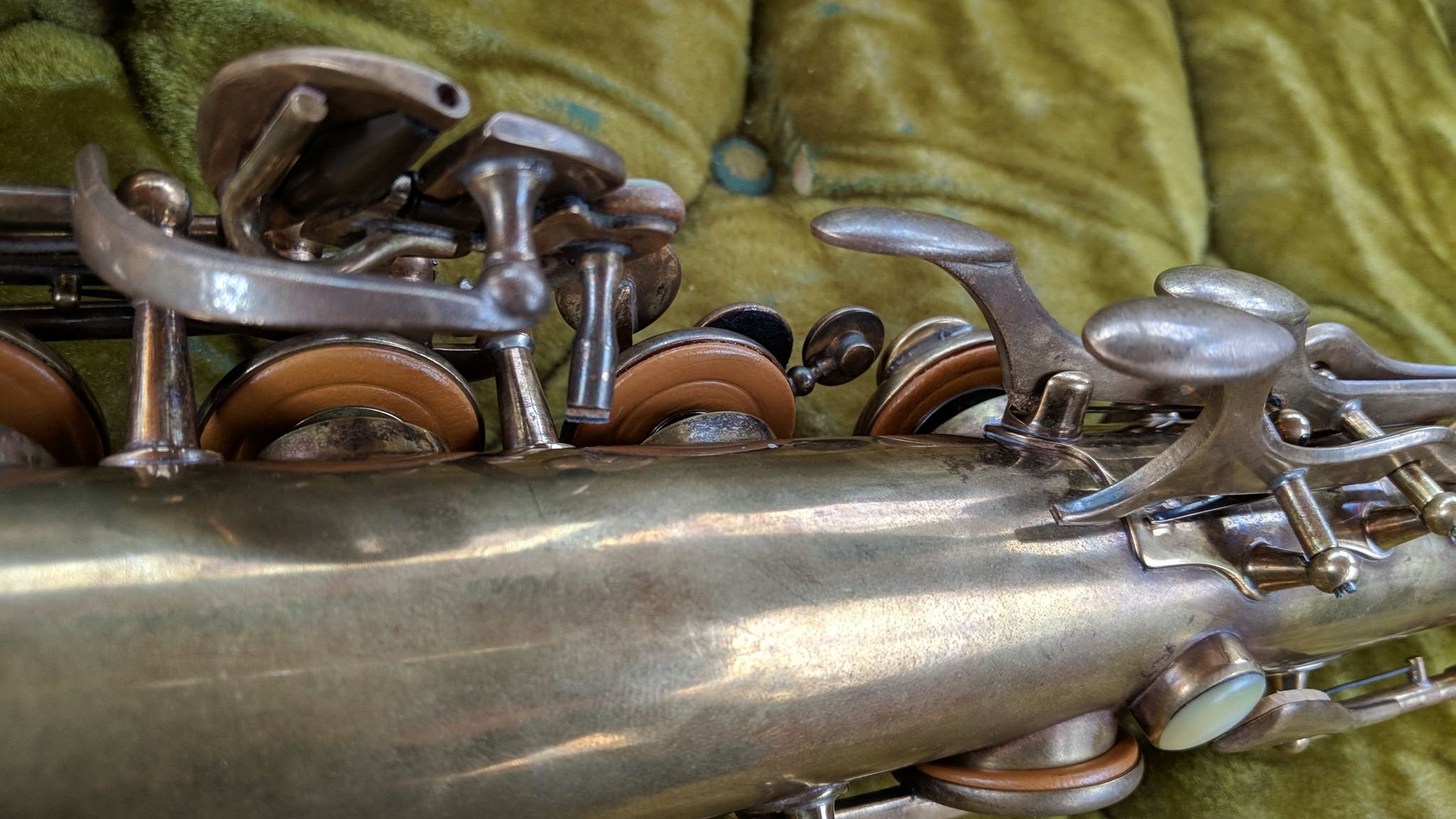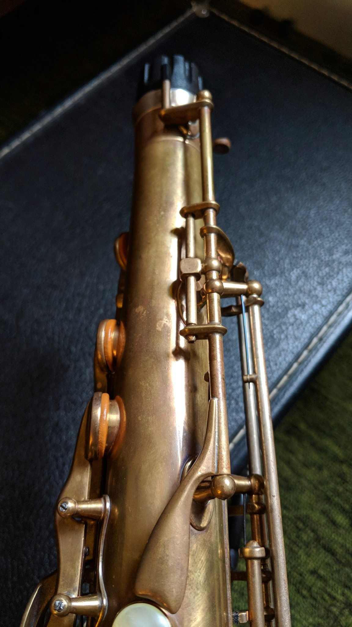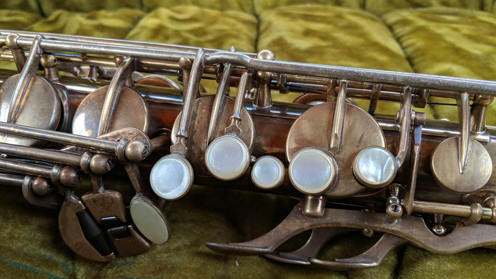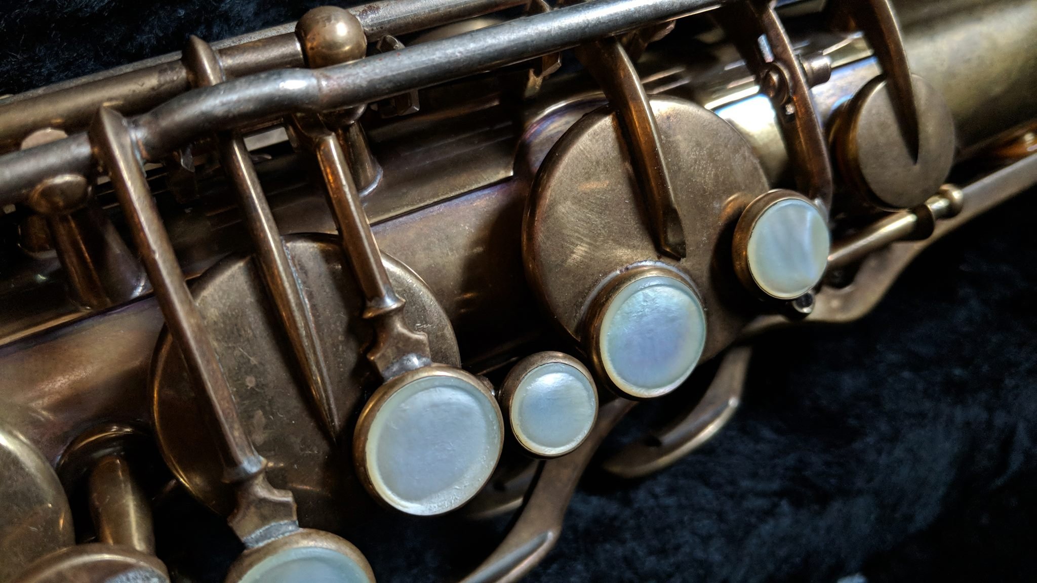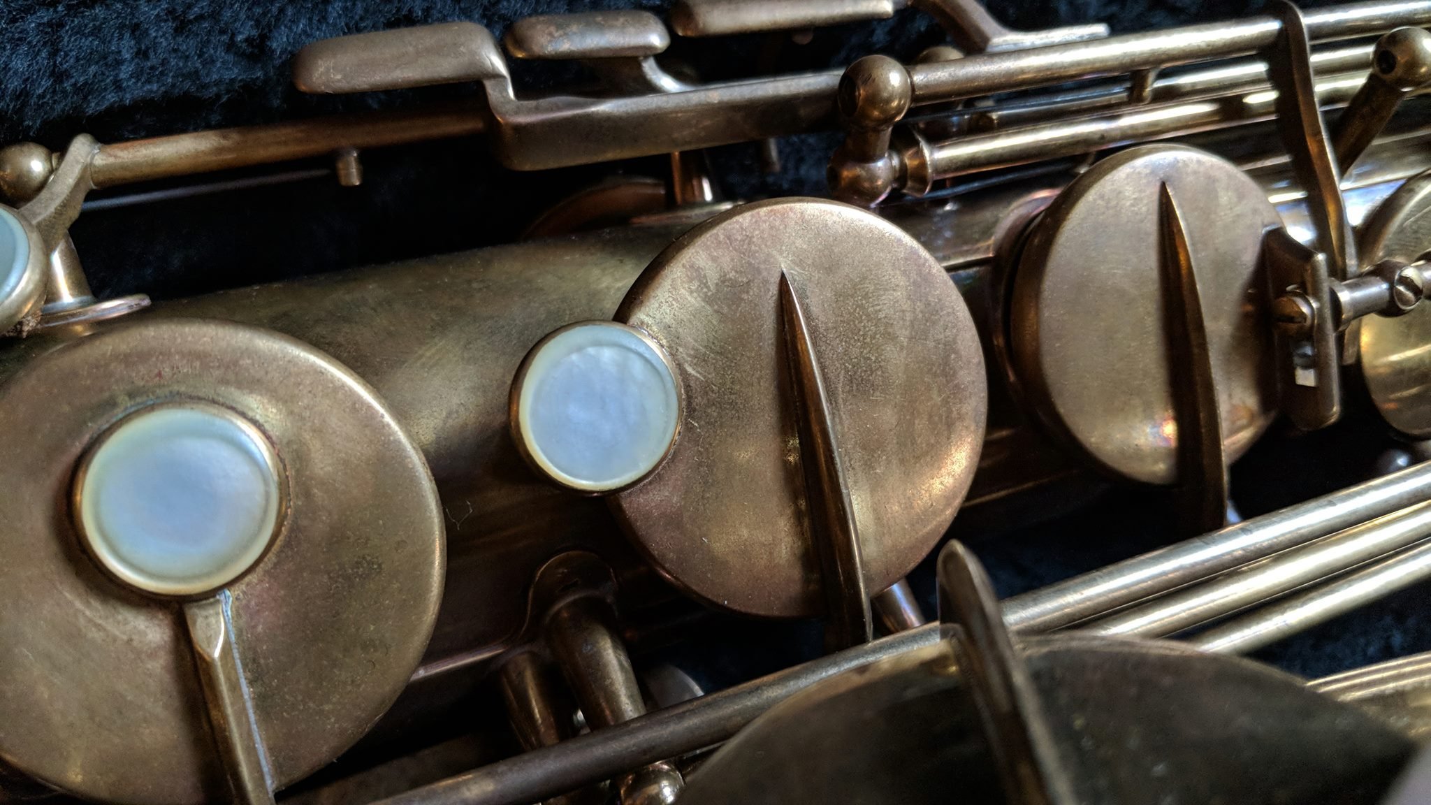 When complete, the horn felt snappy and light under the fingers and played extremely well- exactly as the best of these can. The body is clean, straight, and the numerous solder jobs I performed are largely invisible even to the trained eye. The keywork is tight, action slick, and even the pearls feel nice. I don’t think anyone would play it and have any idea where it had been- or that it had reached its current beautifully worn state through any other way than time. I am very proud of this job. This is what I can do now.