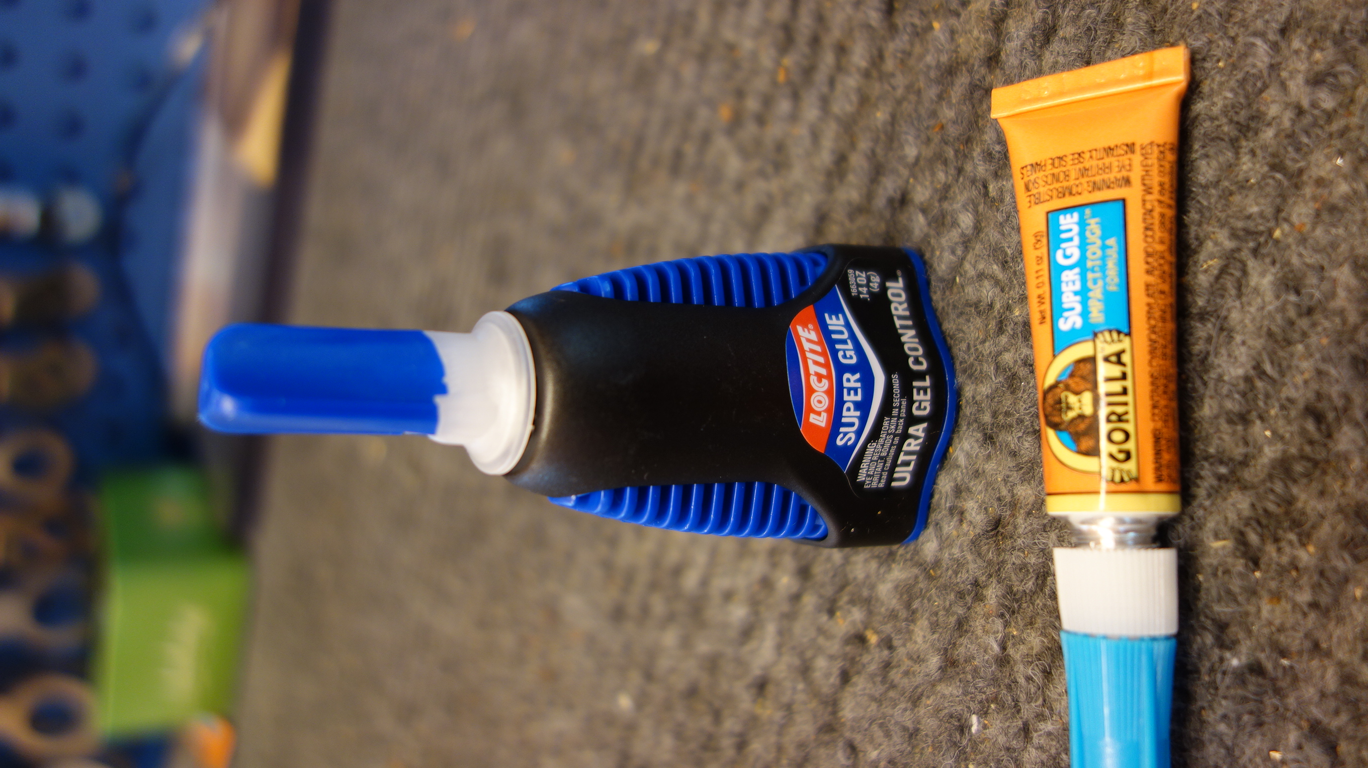 Loctite 454 gel super glue Gel super glue for adjustment materials. I’m sure others work just fine, but Loctite 454 is the one I know best and its good stuff. Available on Amazon. Get the 3 gram tube.