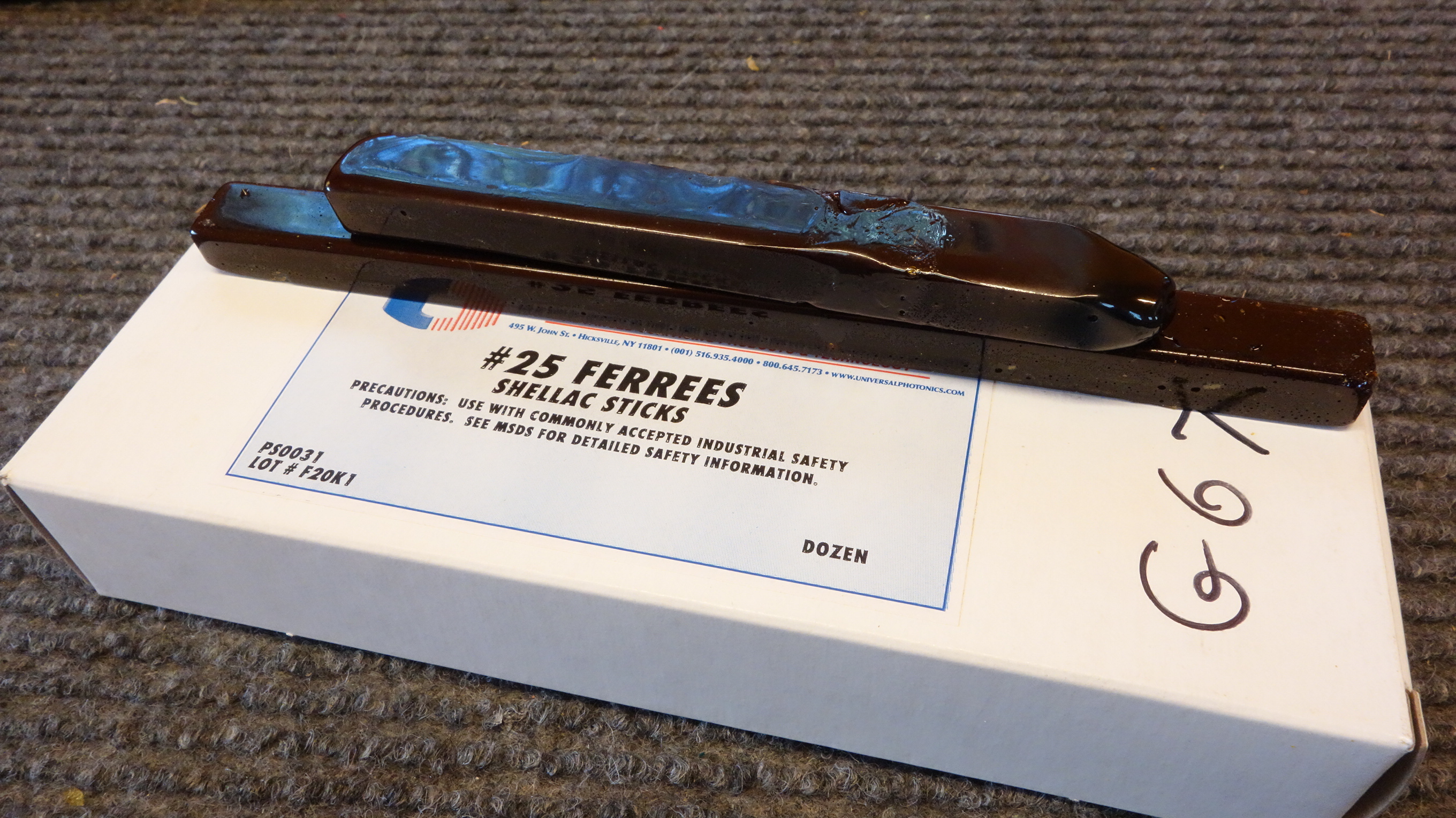 Stick shellac Stick shellac for a pad adhesive. This is a very large part of your pad seating process, so experiment and make sure you have good stuff that you are comfortable with. Suppliers include J. L. Smith, Ferree’s Tools, Allied Supply, and many others. I make my own sticks from dewaxed flakes I get from Ferree’s, which if you want natural shellac (which I like) is the cheapest way to go.